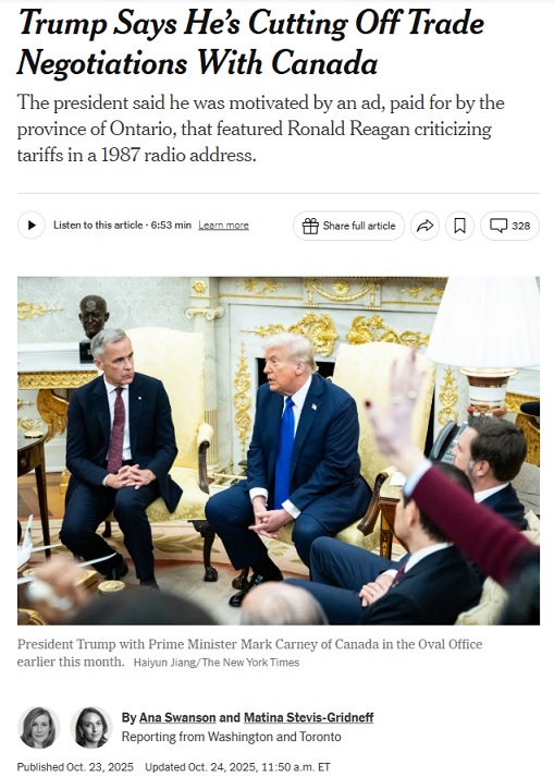 Meanwhile, US President Donald Trump ends trade negotiations with Canada (see https://www.nytimes.com/2025/10/23/us/politics/trump-trade-negotiation-canada.html): I wonder if he’s learned that Canadian Senators (like Kim Pate (https://twb.rocks/domestic-terrorism/perpetrators/individuals/kim-pate)) cover-up human-trafficking and domestic terrorism operations? How could he possibly trust the security of our shared border with criminals like RCMP’s Matt Peggs (https://twb.rocks/domestic-terrorism/perpetrators/individuals/matt-peggs) in charge?