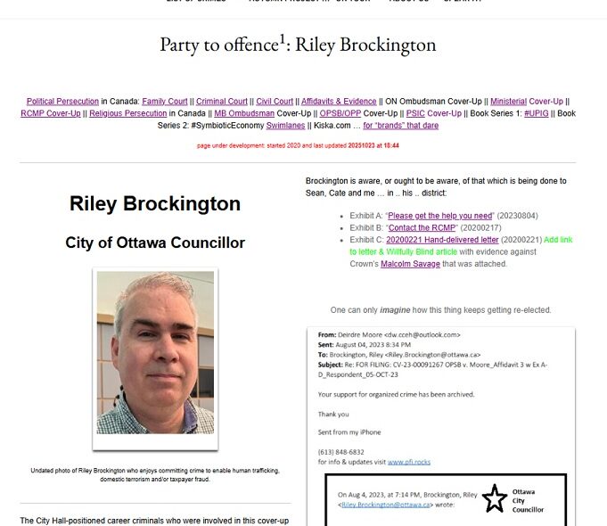 Photograph of evidence regarding allegations against City of Ottawa’s Riley Brockington (https://twb.rocks/domestic-terrorism/perpetrators/individuals/riley-brockington) ; party to offence pursuant to s. 21(1) of Canada’s Criminal Code.