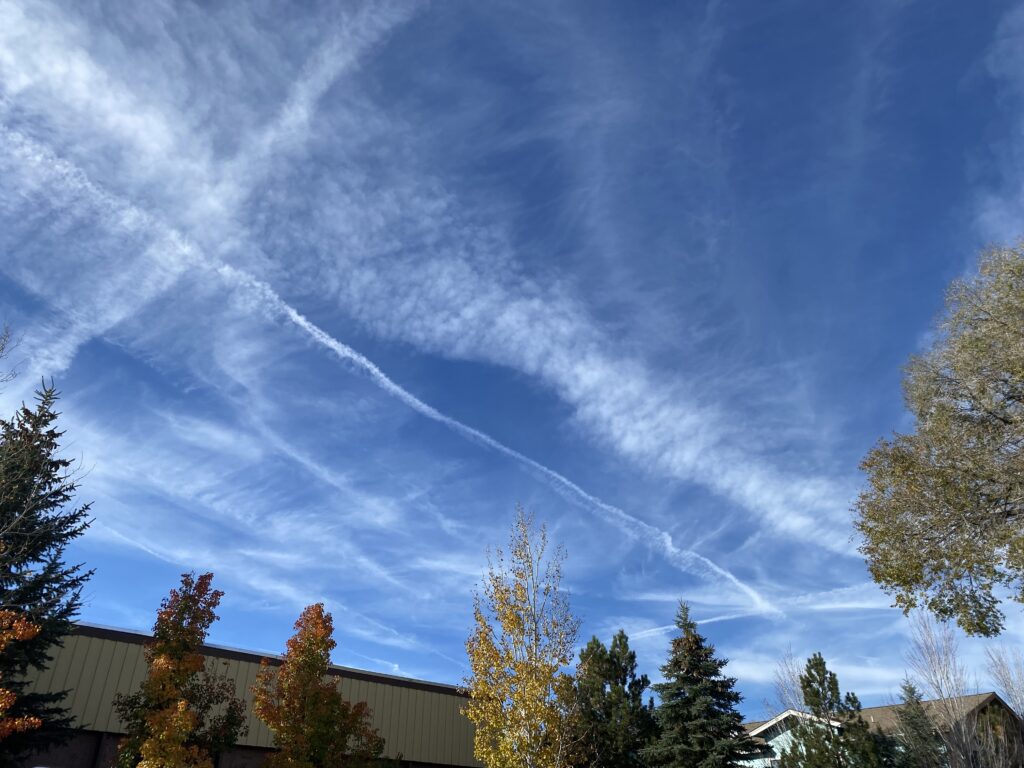 - 20251031 I posted on Twitter/X the evidence of the severe chem-trailing of Flagstaff, Arizona in time for the trick or treaters (see photos below and introduction to chemtrails at https://twb.rocks/living/exposure/chemtrails). (Aside: I also contacted Bank of Montreal, again, to attempt to get copies of my mortgage documents so I can prevent Kiska from renewing the mortgage behind my back (or whatever else he may try to do) again next year. However, their group has been complicit in the de-frauding of me since 2017. Details regarding the theft of my home are being stored at https://twb.rocks/about-us/stolen-property-1_deirdre-moore.)