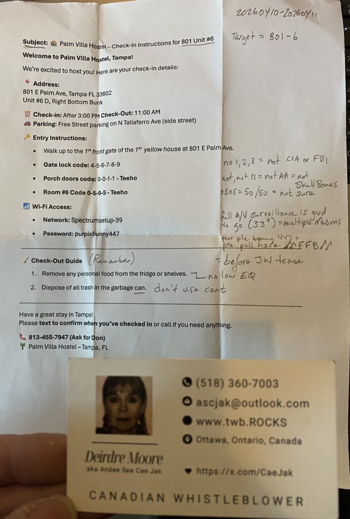 - Palm Villa Hostel (Tampa Florida): insert testimony re “too good, team unidentified” (see image 2)