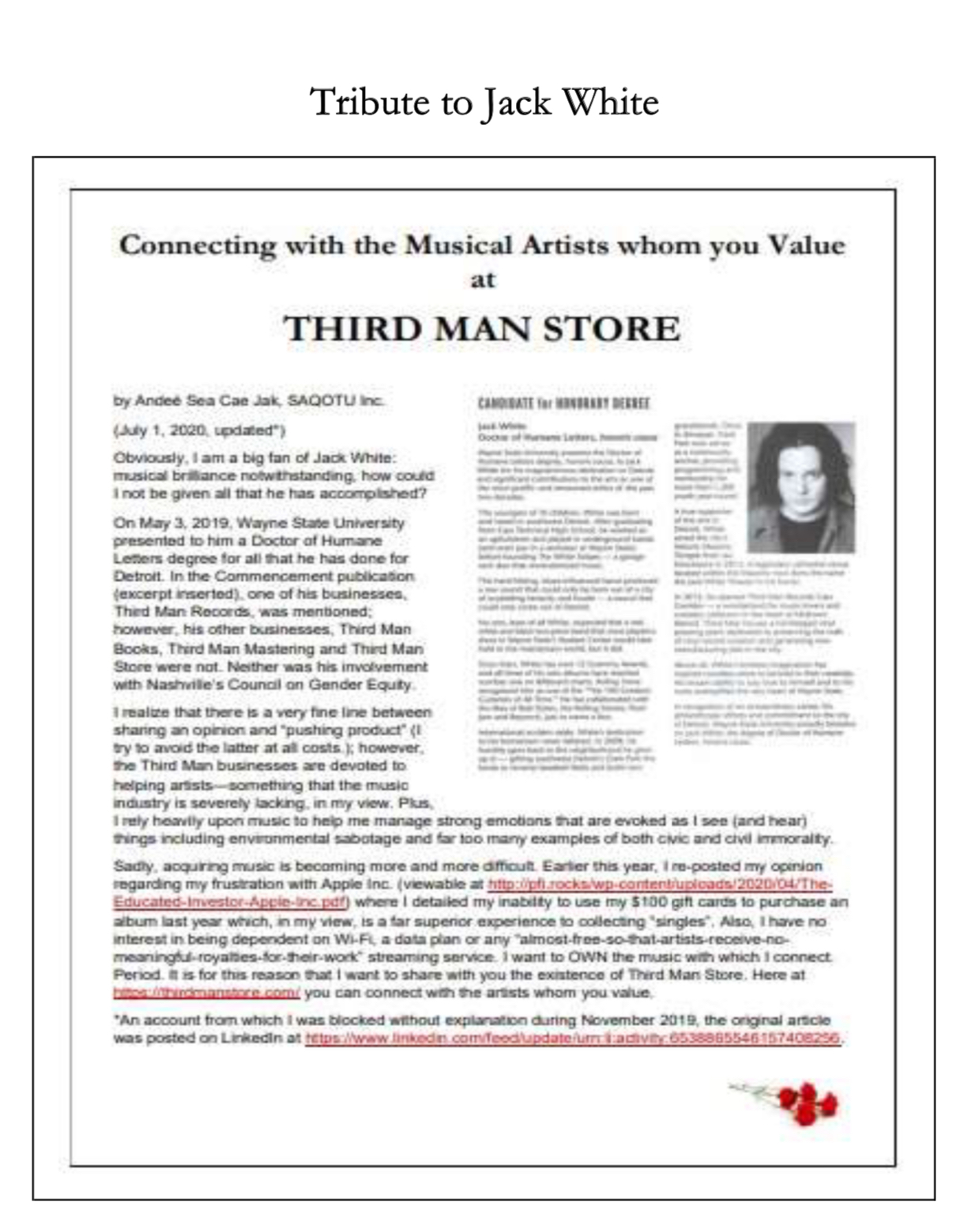 - Introduction: In 202-mmdd, someone asked me “Do you know Jack White?” (hear evidence at insert link)