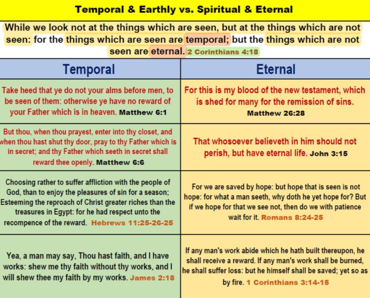 (Discuss definitions of temporal, earthly, spritual and eternal)