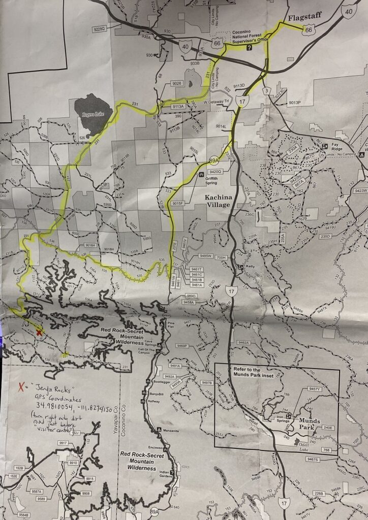 From Flagstaff, I’d use Route 66 to “Forest Service Road” 231 (the 535 is very bumpy and required me to slow down to 10 m.p.h. (or less)).
