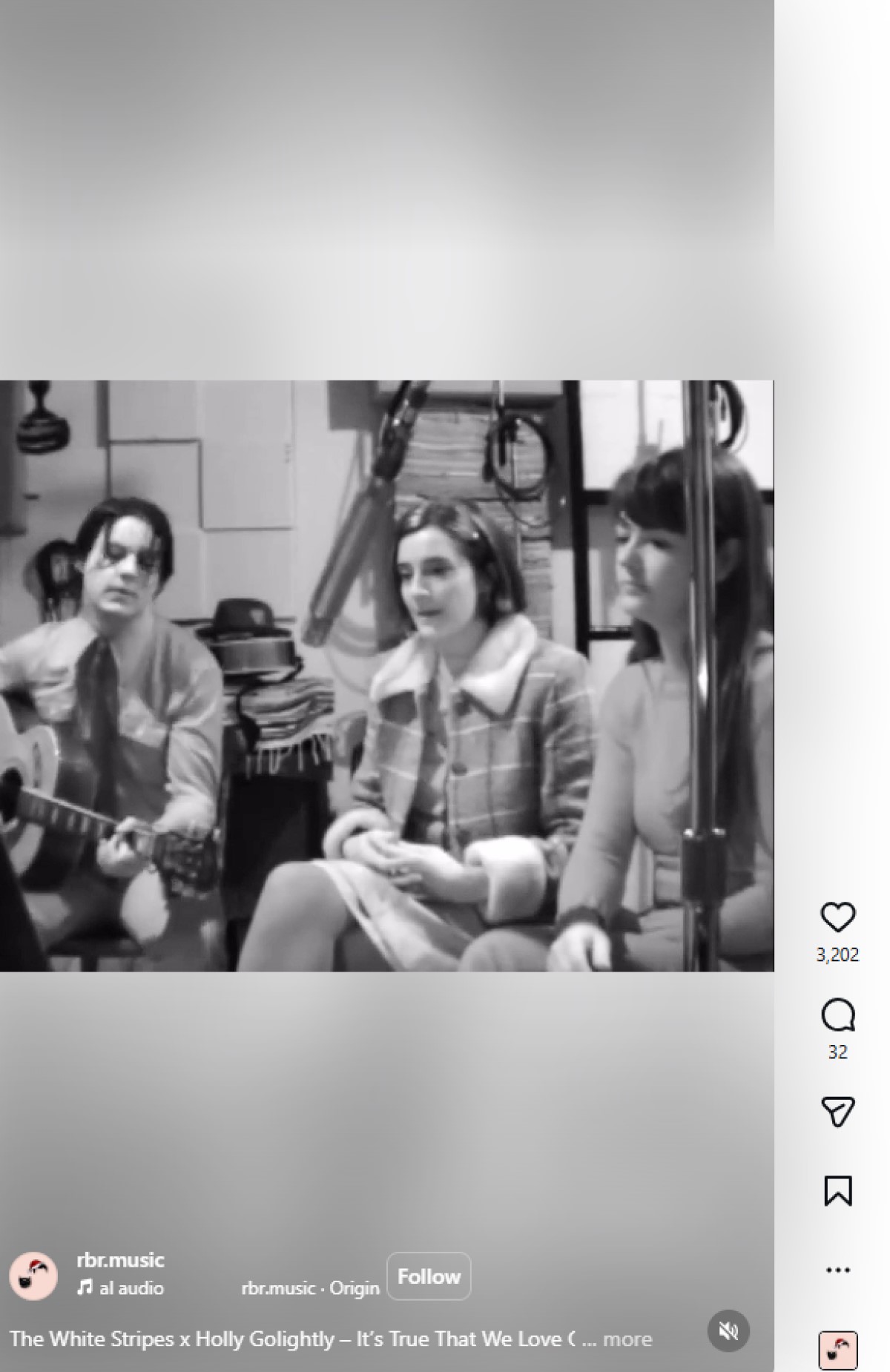 Long story: THS has used “Jack White” to drag me around since 2019#. Prior to that, I had no idea who he was. Anyhow, I follow him on Instagram but I rarely pay attention to any of the notifications. On November 6, just as I was about to head to Nashville (and a little nervous about why I was going), I was motivated to click on one of his videos for “It’s true that we love one another” (which I can now only locate on this rbr.music account https://www.instagram.com/reels/DQBYxlPjKTW/). I’d always like the song but never knew who he sang it with: that morning I heard of artist Holly GoLightly.