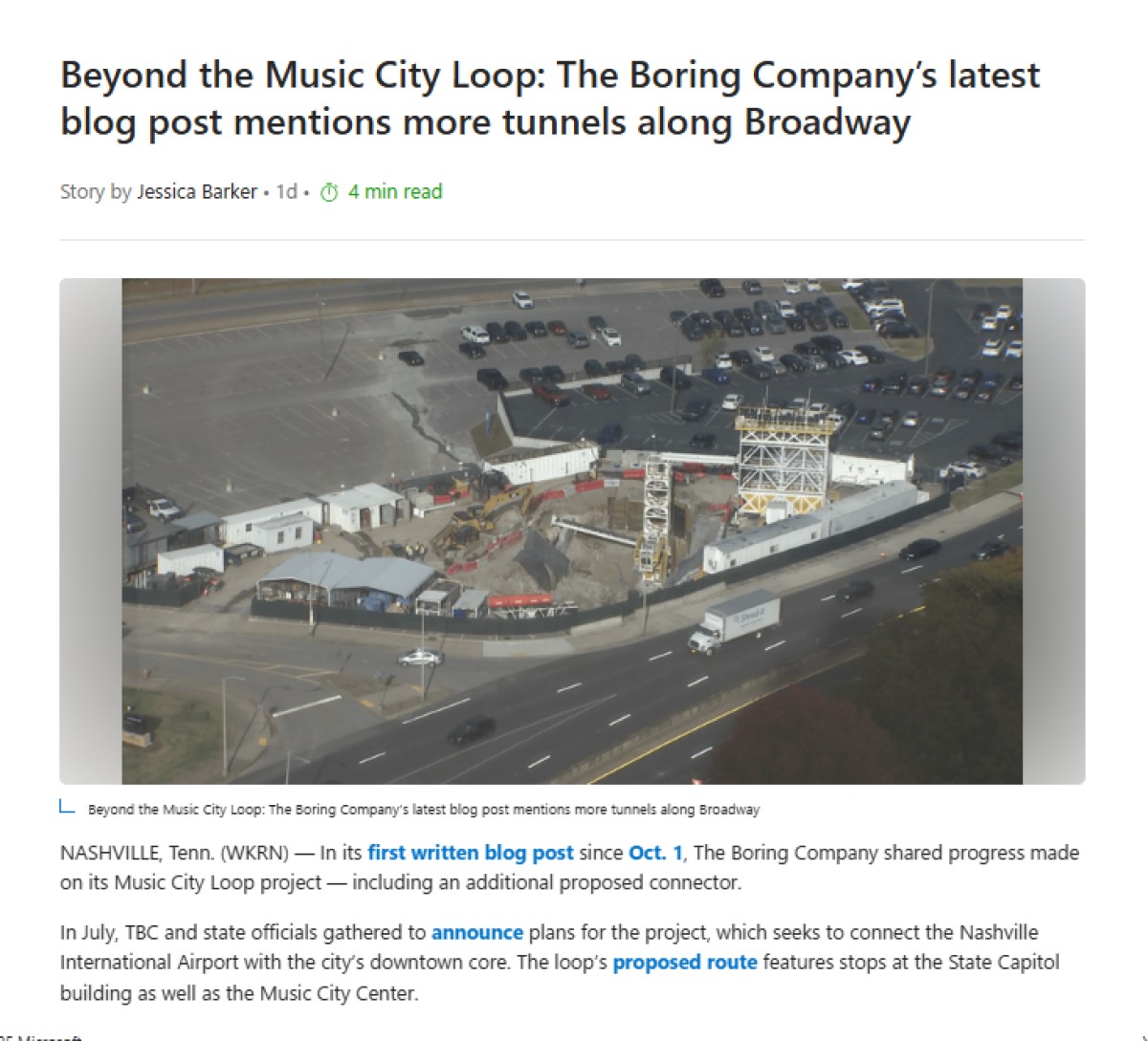 20251117 photo of Nashville’s “Music Loop” tunneling site.
