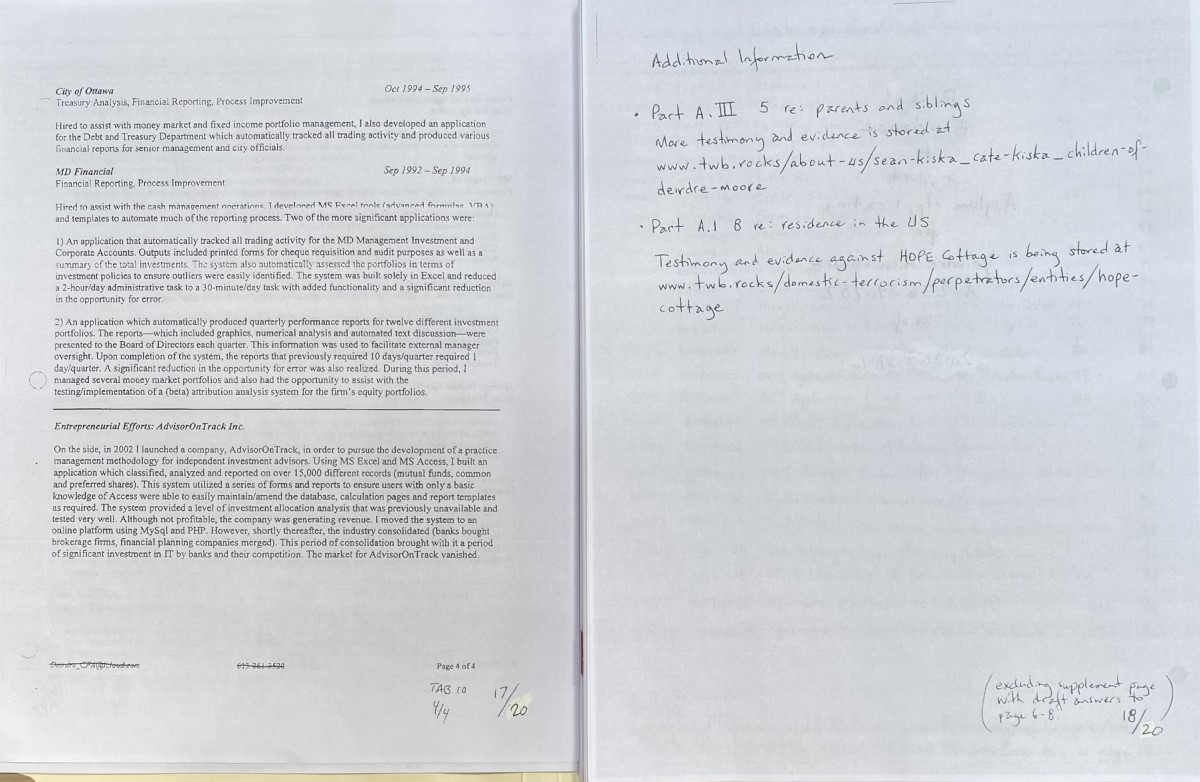 - To Tustin, California #3 couriered on 20260314 was my third draft; still pretty messy but it answered all questions and included over 250 pages of physical evidence: